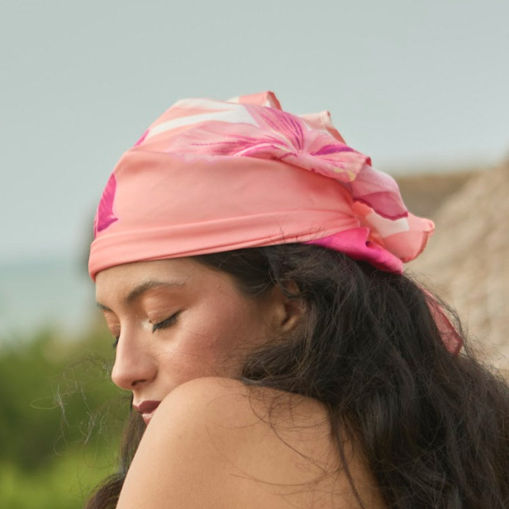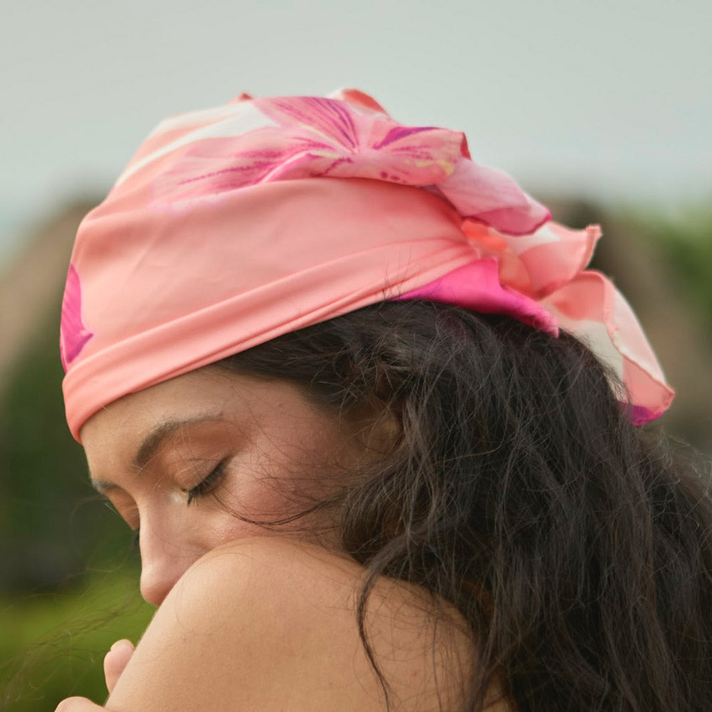 La pañoleta Brisa de Orquídea es un lienzo delicado que envuelve la esencia de aflora. Su diseño floral nace de la fuerza y feminidad de la orquídea, símbolo de renacer y belleza eterna. Ligera y versátil, se transforma en accesorio de cabello, top, cinturón o detalle en el bolso, recordando que cada mujer tiene mil formas de florecer.